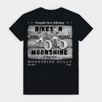 (Back Print) Bikes N Moonshine by Moonshine Gully Garage Co. Unisex Cotton Tee