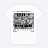 (Back Print) Bikes N Moonshine by Moonshine Gully Garage Co. Unisex Cotton Tee